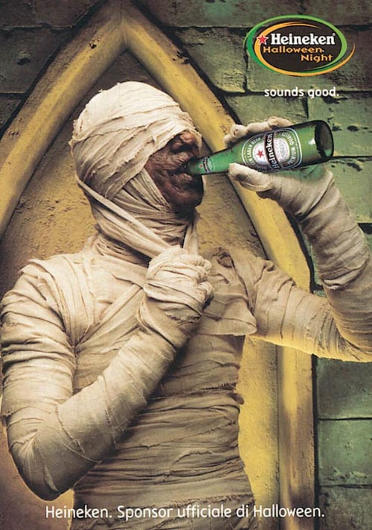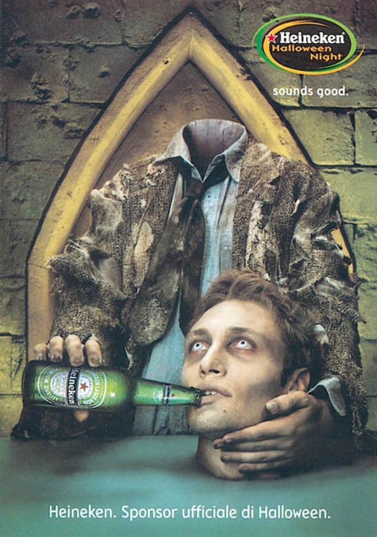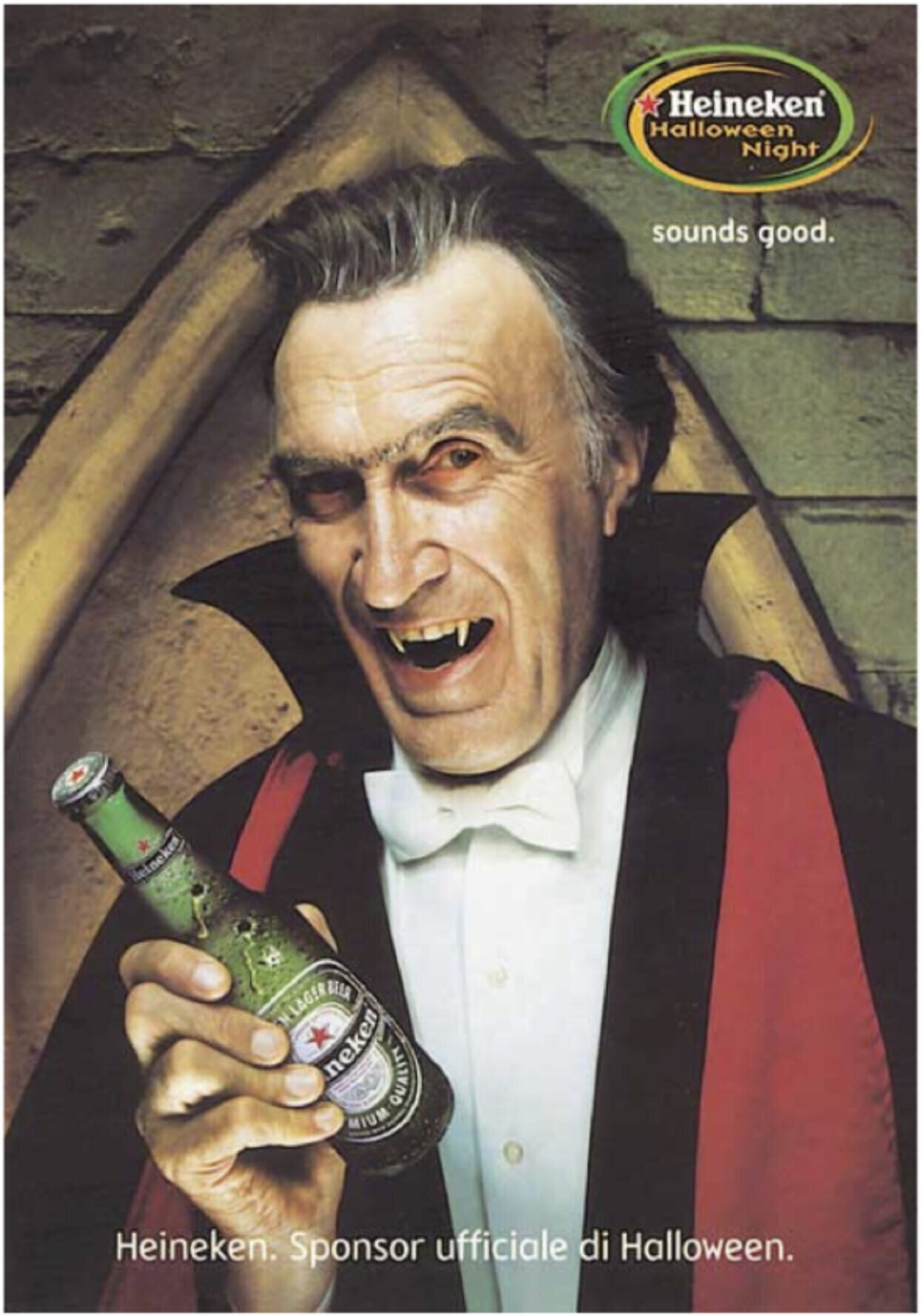 Ek hoef nie die verband tussen alkohol en Halloween te verduidelik nie, nè? Nee…ek het nie so gedink nie. Tog kyk hierdie soort advertensies na die individu. Jy. Die drinker, hul drankie en die kostuum. Eenvoudig en baie effektief, want jy sal voel asof dit direk met jou kommunikeer. Dit verdien ook bonuspunte vir die kreatiewe spanne agter hierdie advertensies deur jou te help om jou kostuum vir Halloween te kies. So terwyl jy by die kroeg staan, presies aangetrek soos die Heineken Wolfman, gaan jy heel waarskynlik jou karakter se keuse van drankie bestel. ‘n Spookagtige taktiek om in jou kop en geheue te kom, vir ‘n aand, stereotipies gevul met eng vlakke van drinkery. Onthou drink verantwoordelik, ouens en spoke.