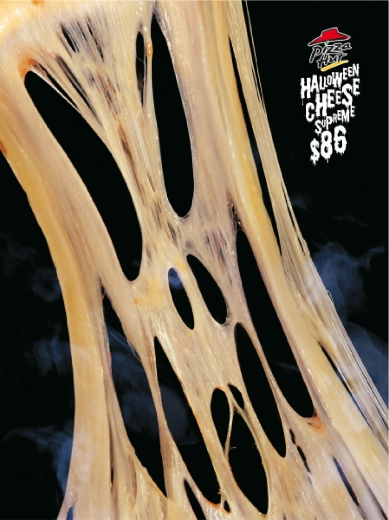 …Ek het geen idee wat $86 by Pizza Hut kan kos nie, maar as ek raai uit die tydsberekening van die advertensie, raai ek dis ‘n partytjiepizza. ‘n Uitstekende manier om kos te adverteer. Die produk word die verbinding met die seisoenale vakansie. In hierdie geval ‘n kaasmasker (Verstaan jy?…VERSTAAN JY?… Jammer…dit was verskriklik).