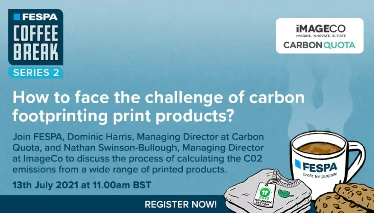 In hierdie FESPA-koffiepouse sal ons kyk na die proses om die CO2-uitlatings van ‘n wye reeks gedrukte produkte te bereken.