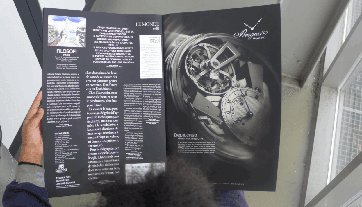 Atelier für Siebdruck is ‘n skermdrukker wat spesialiseer in die skep van drukeffekte op drukprodukte vir die Switserse horlosiebedryf.