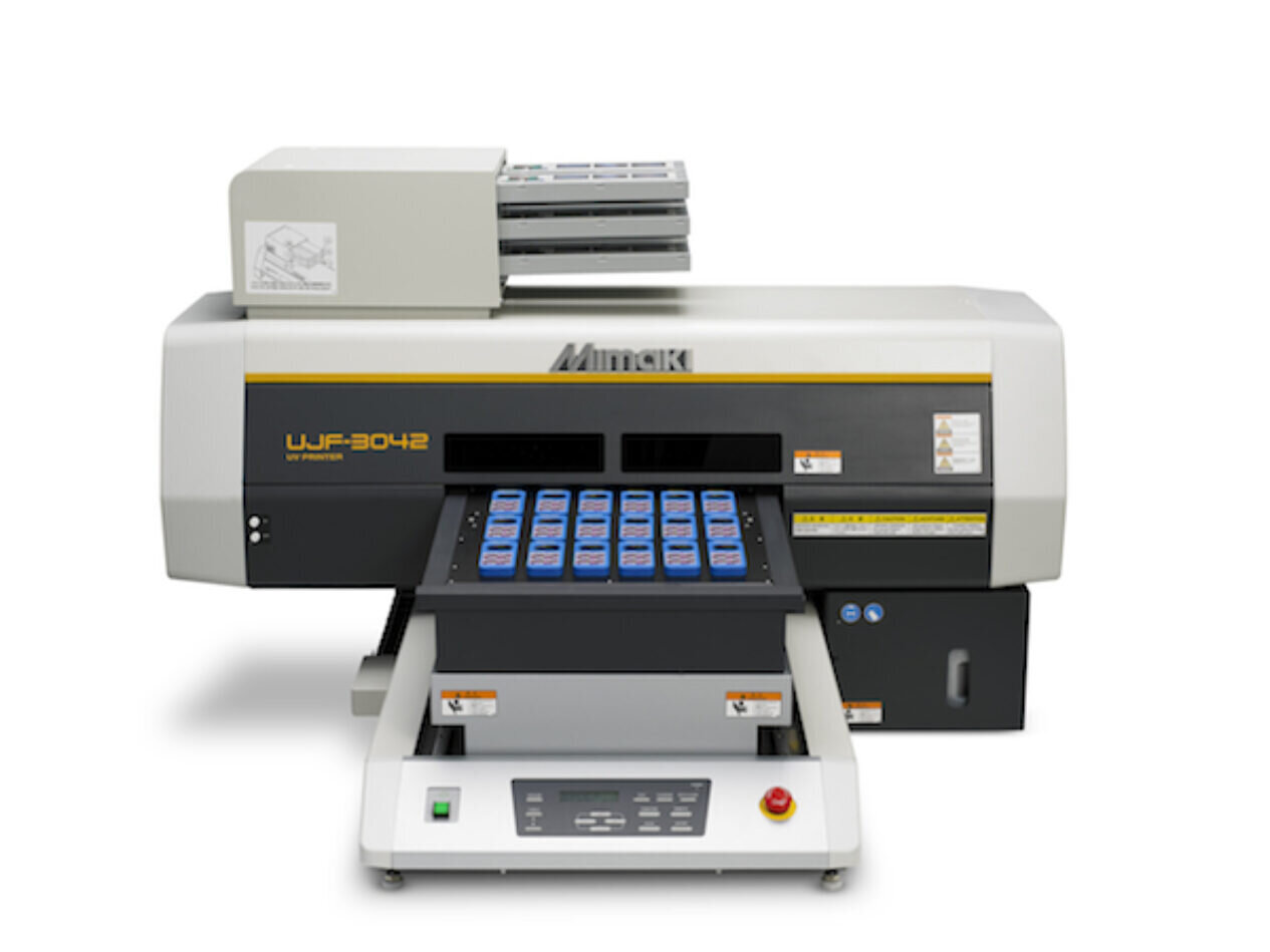 In die afgelope sewe jaar het Mimaki (en gevolg deur Roland DG, Mutoh en ‘n paar slim derdeparty-Mimaki-hackers) ‘n familie van kleinformaat UV-LED-inkjetdrukker-patrone ontwikkel. Hierdie sal nie 100 000 items per uur druk nie, maar hulle kos €20 000 tot €40 000 en nie miljoene nie.