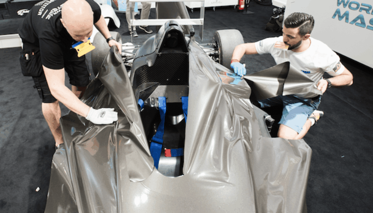 Die World Wrap Masters-finaliste moes een kant van die renboot wat deur die Haugaard Racing Team in die 2017 Wêreld Formule 4 UIM Motorbootkampioenskap gebruik is, toedraai.