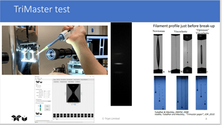 Dr. Tri Tuladhar het meer as 20 jaar ondervinding in navorsing en ontwikkeling en het ‘n PhD van die Universiteit van Cambridge in Chemiese Ingenieurswese. Hy lei Trijet Limited, wat spesialiseer in alle aspekte van inkstraaldrukwerk, insluitend komplekse reologiese karakterisering en fyn afstemming van inkstraalink, formulering van spesialiteitsverf, glasemaljes en funksionele ink, spuitoptimalisering en die ontwikkeling van pasgemaakte reologiese gereedskap vir sulke toepassings. Dr. Tri het bespreek hoe klein variasies binne inkviskoelastisiteit stroomop vloeidinamika en straalopbreekmeganisme stroomaf beïnvloed. Hy het twee pasgemaakte reologiese gereedskap, TriPAV en TriMaster, aangebied wat albei komplekse vloeistofreologie van lae-viskositeit tekstiel-inkstraalink in ‘n laboratoriumomgewing kwantifiseer wat inkstraaldruktoestande stimuleer. Dri Tri het die behoefte beklemtoon om die invloed van hierdie dinamiese eienskappe van inkstraalink ten volle te verstaan, en dit sal help om betroubare, hoë-viskositeit inkstraalink te formuleer en fyn af te stem en golfvormontwikkeling te versnel. In wese fokus sy werk op die balans van inkreologie en elektroniese golfvorms om die hoogste kwaliteit en spuitspoedpotensiaal te bereik.