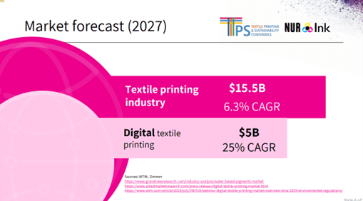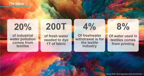 Dr. Simon Daplyn is verantwoordelik vir die bestuur van produk- en bemarkingsinsette by Sun Chemical. Hy is tans verantwoordelik vir die bepaling van die produkstrategie vir die besigheid in digitale tekstiele met ‘n fokus op volhoubare tegnologie-ontwikkelings. Tans produseer die tekstielbedryf groot hoeveelhede afval, met 20% van industriële waterbesoedeling wat van tekstiele afkomstig is. Dr. Daplyn het genoem hoe die huidige vooruitsigte verander met regeringswetgewing wat ontwikkel, handelsmerke wat hul eie volhoubaarheidsstandaarde stel en verbruikers wat etiese en volhoubare aankope wil doen.
