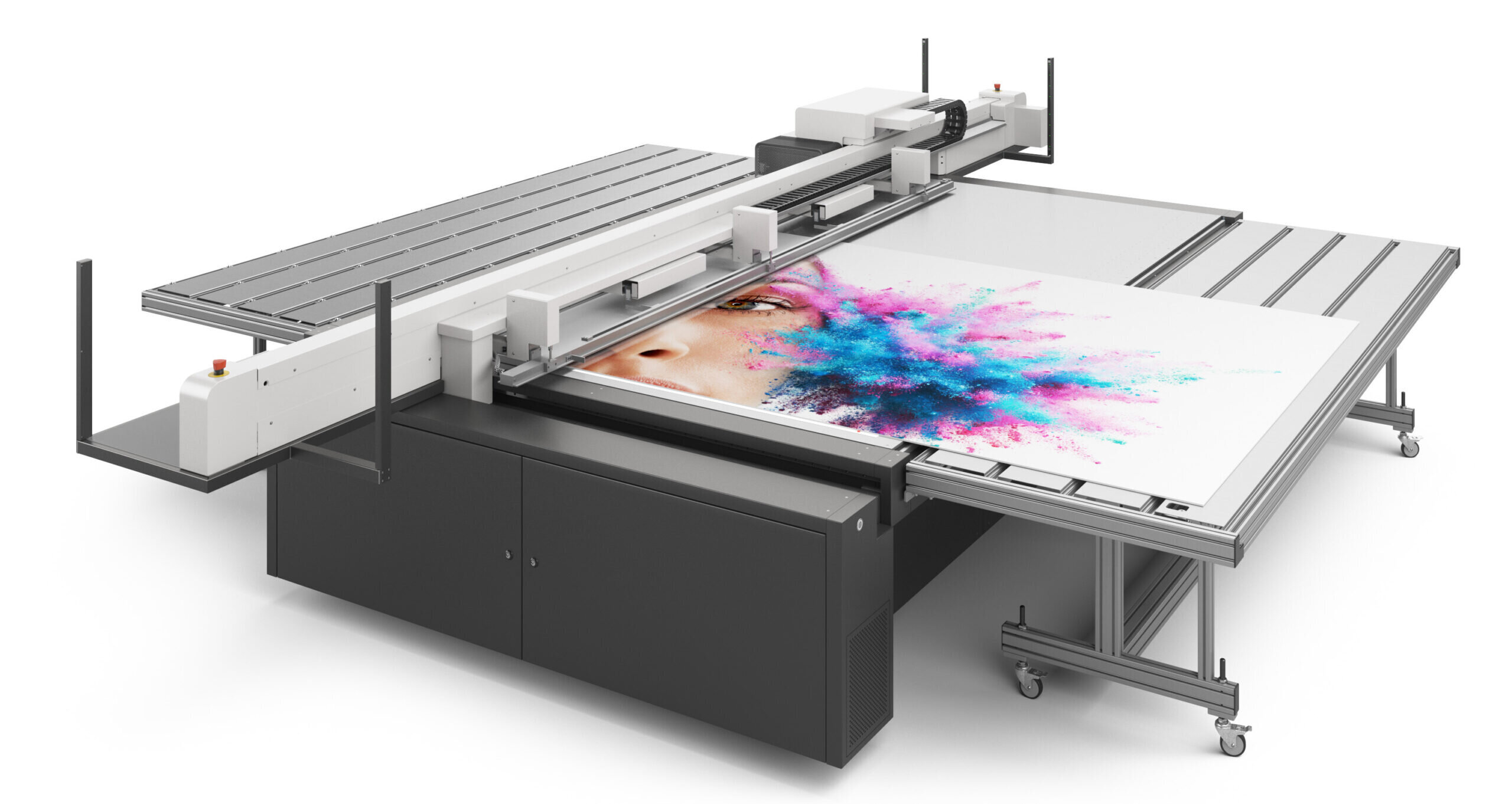 Die drukker, wat ‘n drukvermoë van tot 2.5 x 1.25 m bied, druk direk op ‘n wye reeks substrate tot 80 mm dik, insluitend akriel, polikarbonaat, PVC, aluminium, metaal, poliëster, skuimbord, stireen, hout en klip.
