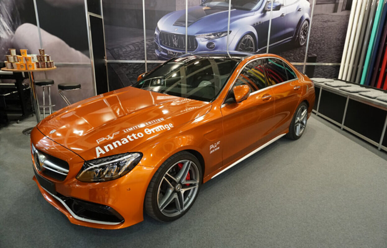 الصورة: سيارة مرسيدس مغلفة بفينيل PWF في جناح FESPA 2018. رصيد الصورة: س. أنجيرير