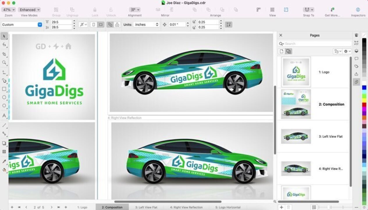 يمكن استخدام CorelDRAW لتصميم أعمال كبيرة الحجم مثل أغلفة المركبات