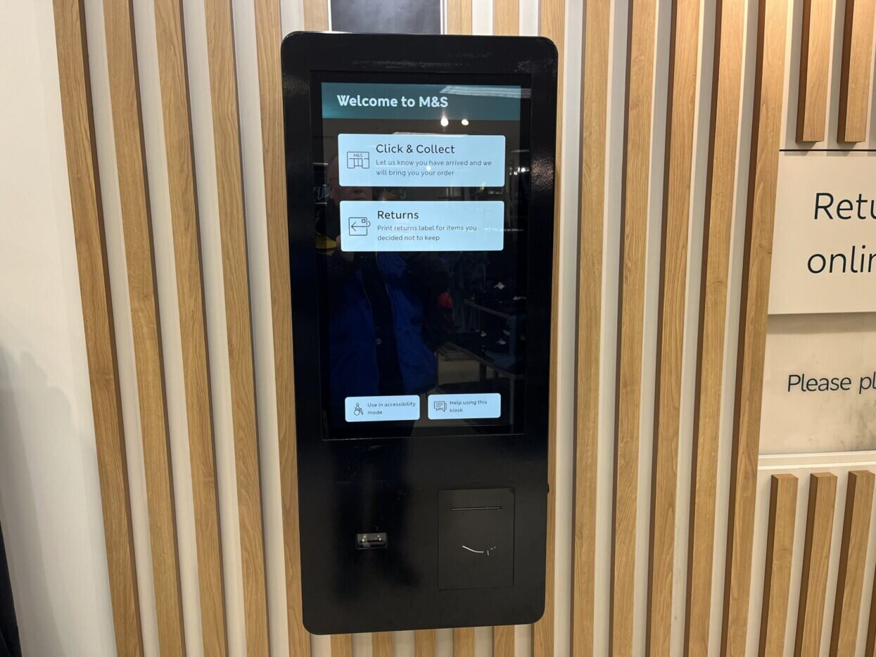 تتيح هذه الشاشة التي تعمل باللمس من داخل المتجر للعملاء استلام المشتريات عبر الإنترنت وإعادتها بأنفسهم. ©نيسان كليري