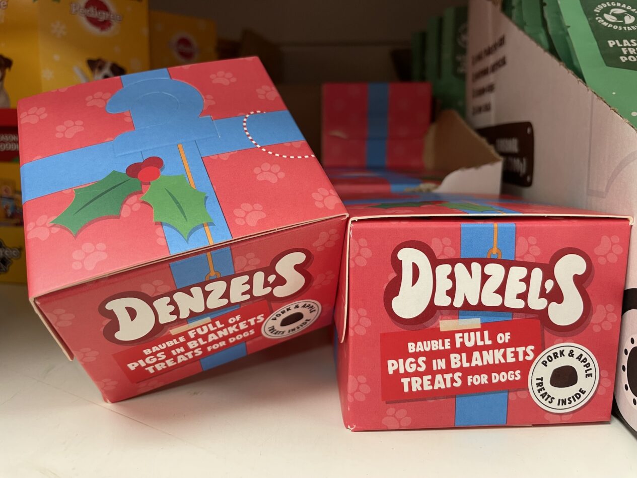 Kdo říká, že si Vánoce nemohou užít i domácí mazlíčci? Značka krmiv Denzel’s vydala tuto sváteční edici psích pamlsků v potištěném kartonovém obalu, který má vypadat jako zabalený dárek.