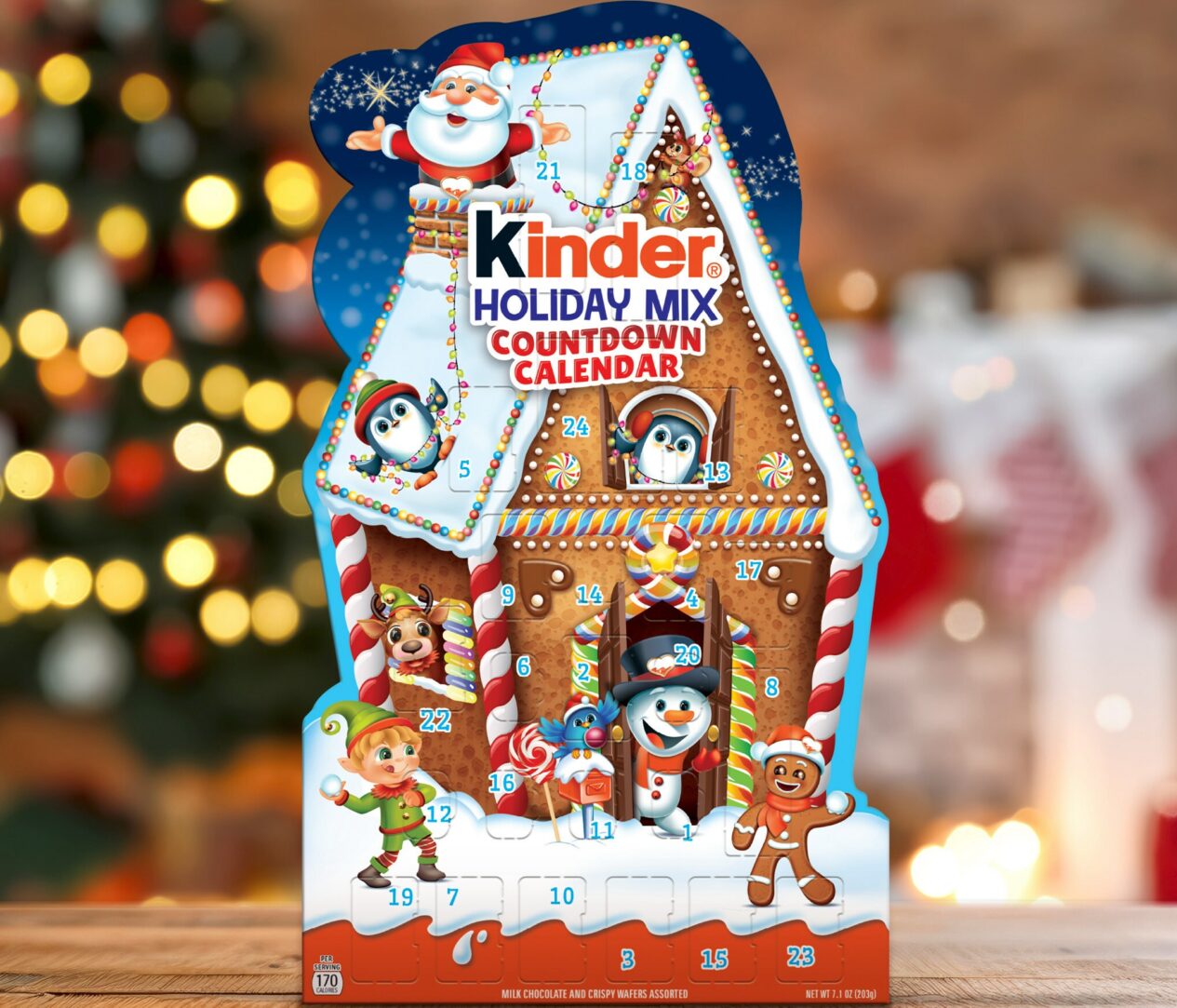Společnost Ferrero vydala další adventní kalendář a tento vánoční kousek, který dětem pomáhá odpočítávat dny do velkého dne. Dílko z kartonu bylo vyrobeno ve tvaru perníkové chaloupky, jejíž dveře mohou děti otevírat a odhalovat v nich čokoládové pochoutky Kinder.