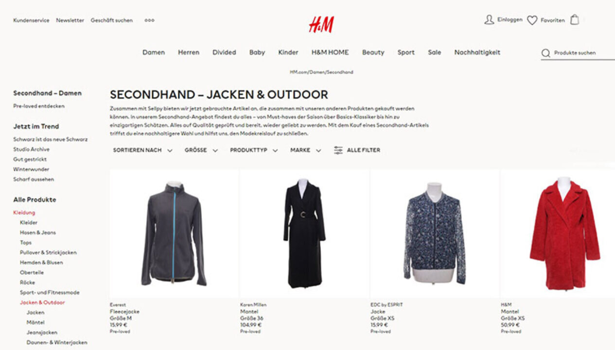 Es wird erwartet, dass Secondhand-Mode in den kommenden Jahren bis zu 25% des Umsatzes der Modebranche ausmachen wird. Deshalb haben Fast Fashion-Konzerne wie H&M "pre-loved"-Modegeschäfte eingerichtet.