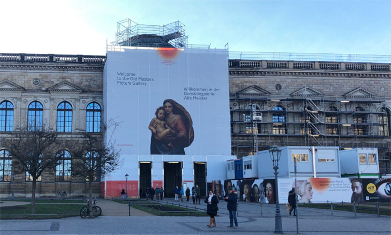 Purpose: When the Gemäldegalerie Alte Meister at Dresden (Saxony) underwent some renovations in 2018, this digitally printed entrance was created to ensure visitors knew that it was still open.