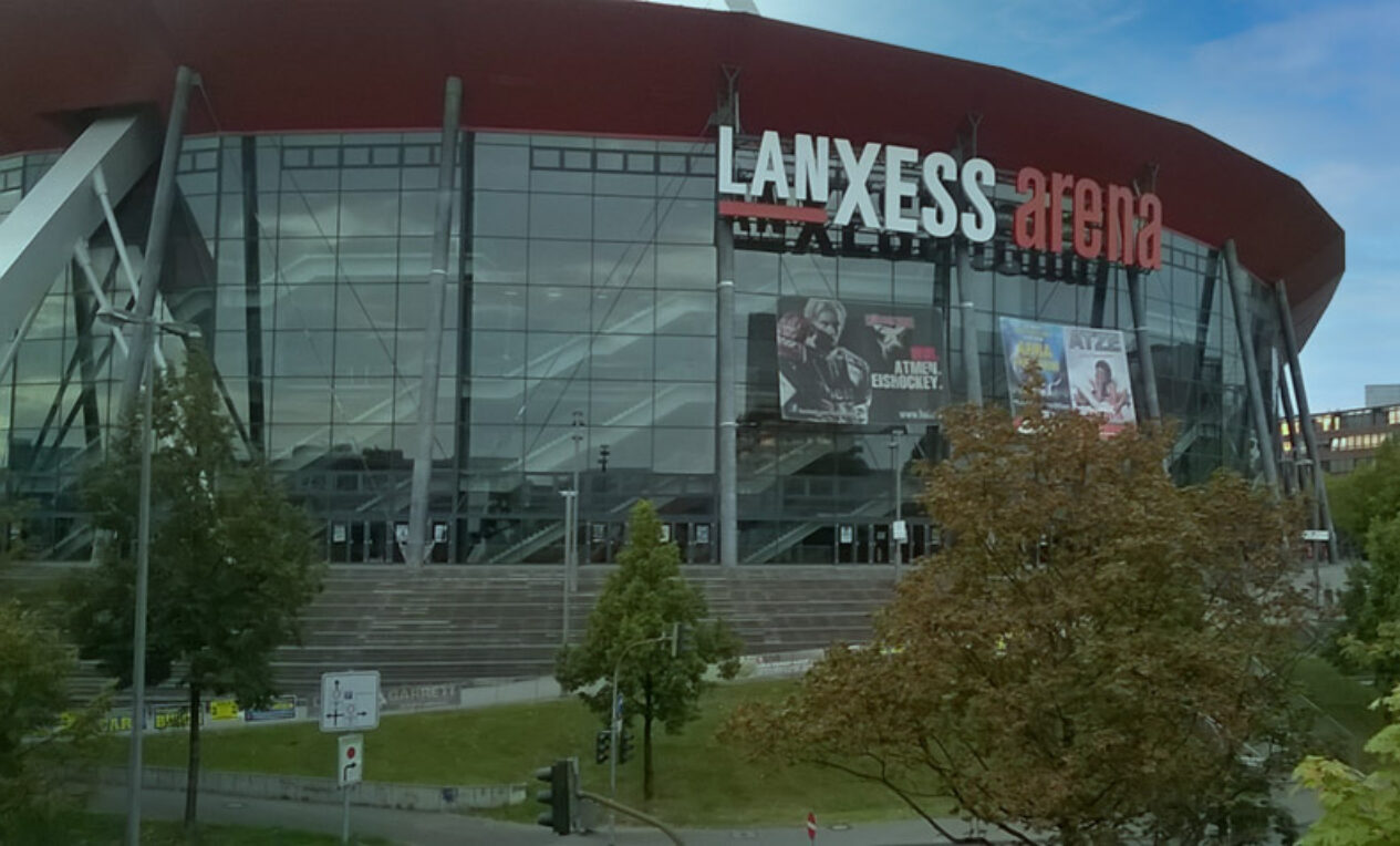 Purpose: Lanxess Arena is one of the biggest multifunctional arenas worldwide, with seating for 20,000 people. The main entrance area advertises upcoming events.