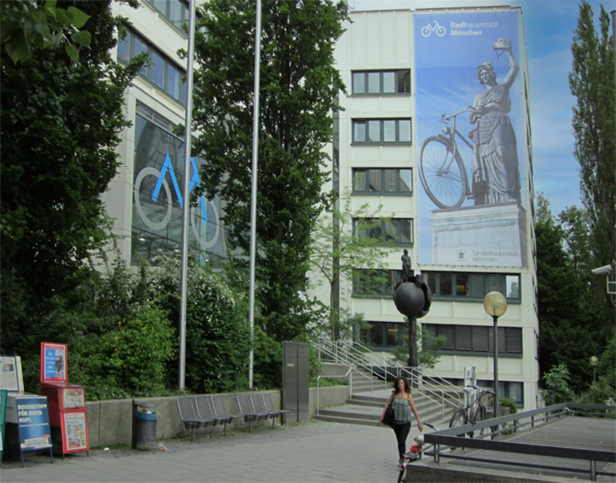 Purpose: The wide format printed poster was displayed at the entrance of the Munich KVR, the central municipal office for passports, legal marriage and other essential citizen services. It was designed to help the city’s campaign to become more bike friendly.