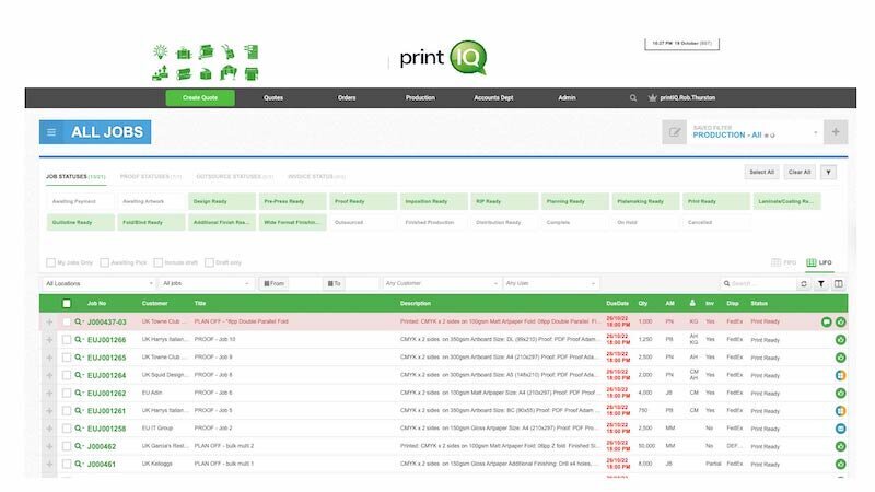 Caption: The MIS should be able to show an overview of the status of all the jobs in hand, as in this image from PrintIQ.