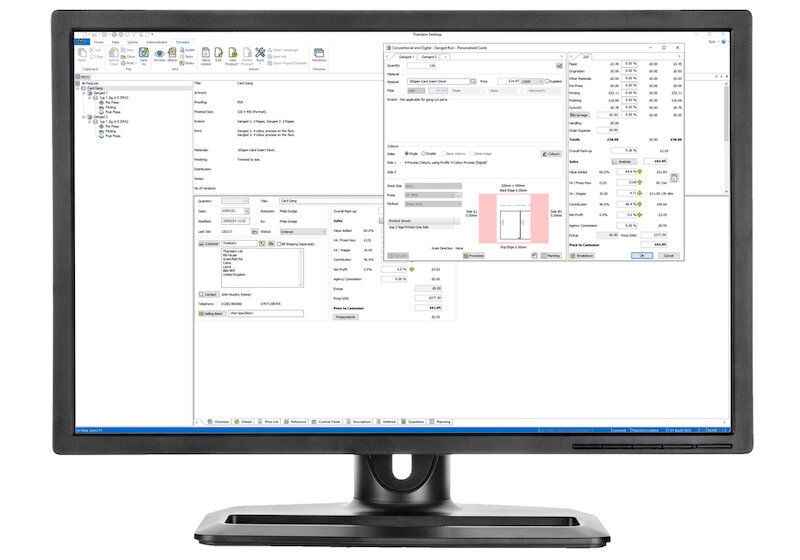A fundamental feature of any MIS is the ability to estimate jobs and to send out quotations for work. This means being able to take into account all of the relevant costs, including the raw materials and the staff labour as well as the running costs and depreciation of the equipment being used and determining a reasonable margin for each job. In some cases there might be a choice of ways to produce a job with different implications for the estimate.