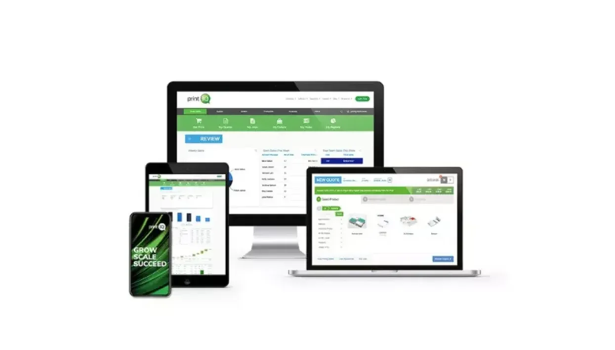 Caption: Ideally, users should be able to access most of the features of an MIS from portable devices, including laptops, tablets and smartphones, as PrintIQ demonstrates here.