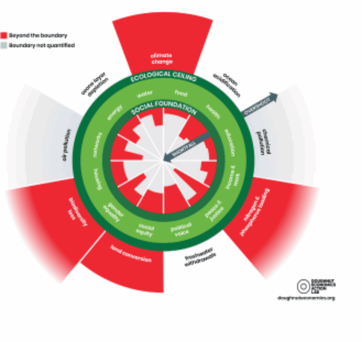 Doughnut Economics provides a deeper analysis and addresses not just the issue with the overuse of resources and pollutants but also looks at the shortfall for meeting people’s basic needs.
