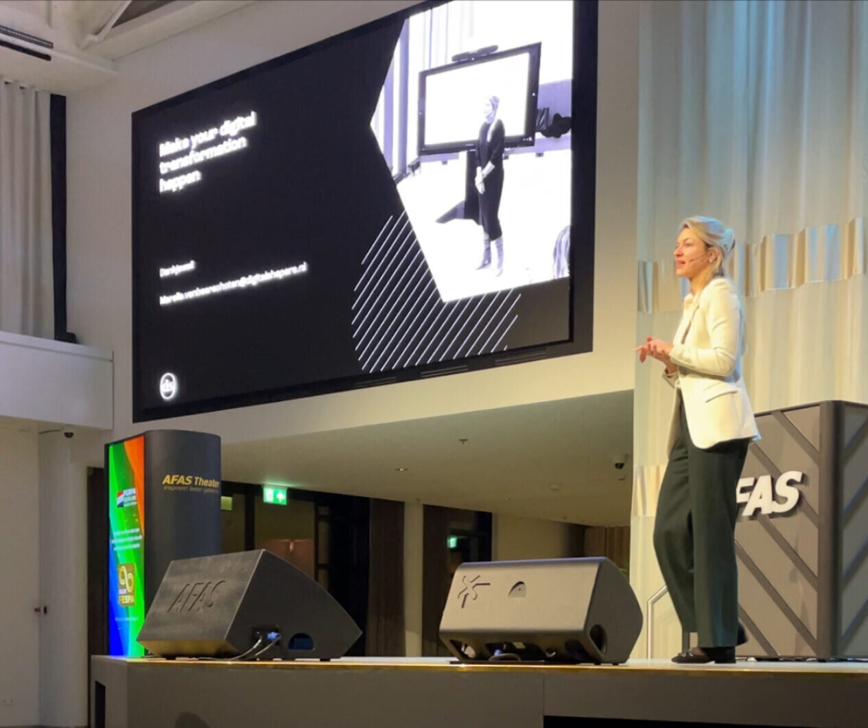 Speaker Marelle van Beerschoten discussing the current trends in digitalization