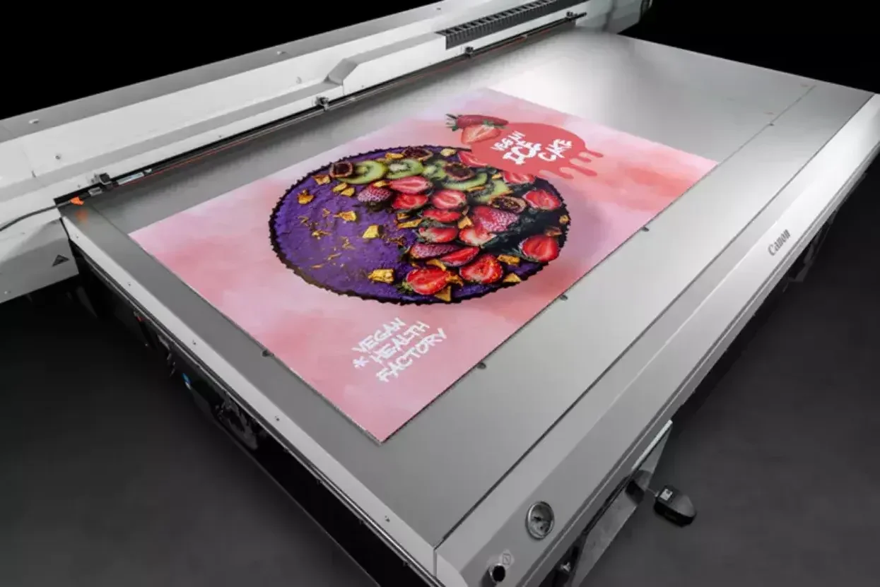 Canon’s latest addition to their Arizona UV range focuses on sustainability. The new Arizona 135 GT flatbed printer has a table size of 125 x 250 cm and features a “Instant-On” function with only minimum warm-up time for LED lamps. Due to more energy efficient vacuum pumps and UV curing process, the Arizona 135 GT does not require a high current plug, a simple household plug will suffice.