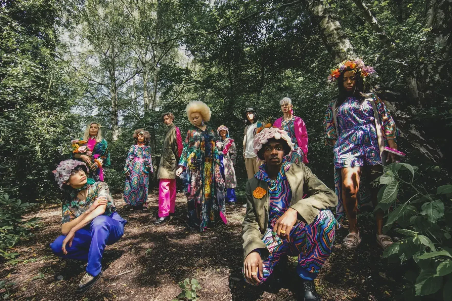 “The collection includes sustainable, genderless, ageless, versatile all-season pieces along with 3D printed accessories. The print has been designed in house with inspiration from all natural elements. There is also very little black as colour if life!” Prints are designed with nature in mind, exploring natural elements his Concentric print offers “dark natural prints of flora and fauna and tree rings as inspiration”.