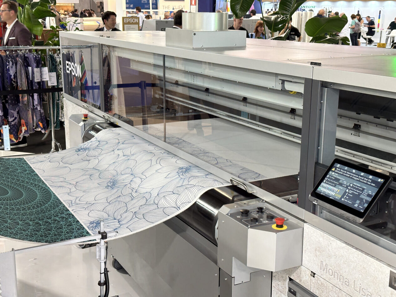Epson’s Monnalisa range of machinery continues to develop and meet the challenges of printed production stating “Reliability is a key factor when it comes to the real world of daily production. Every issue/inefficiency causes downtime or quality flaws, all costing you money and credibility. Monna Lisa’s features help you keep production going: selectable channel configuration, high accuracy, PrecisionCore print head array, ink management, continuous wrinkles check and head cleaning, RGB auto balancing, fabric feeding system… Every single piece of technology is designed to solve real problems and rearrange on your needs, to give you the smoothest manufacturing experience.”
