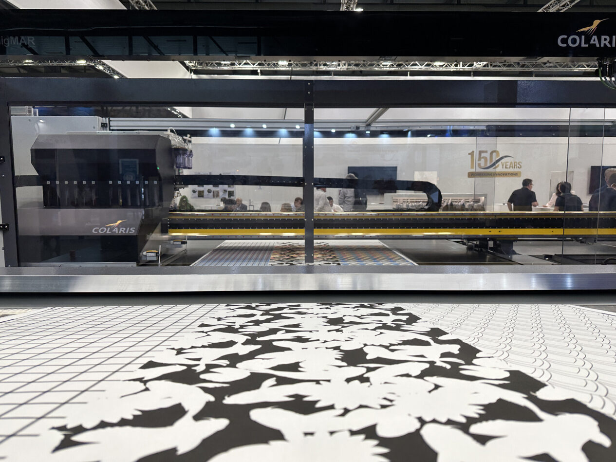Zimmer Austria recently introduced the new Colaris printer series with around 16 color groups. The next generation of COLARIS printers comes with the Seiko RC1536 printhead generation with lower energy consumption. A newly designed ink circulation system without need for a vacuum ensures a stable print run and high-quality print results. With the COLARIS Printing System from Zimmer, an outstanding pigment print can be achieved, as well as effective pre- and after treatment.