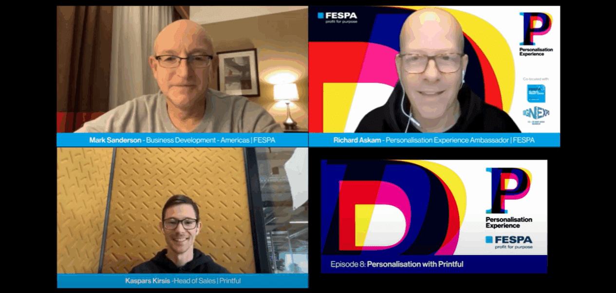 FESPA’s Personalisation Experience Ambassador, Richard Askam speaks to Kaspars Kirsis, Head of Sales at Printful and Mark Sanderson, Business Development – Americas from FESPA about the opportunities for printers in Personalisation.