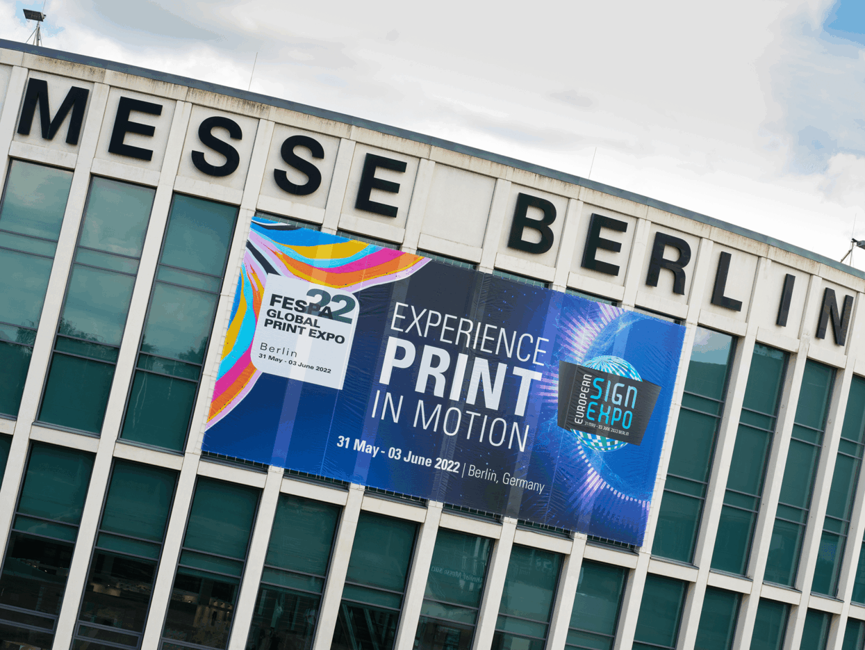 The images above and below showcase the visual impact of digital technologies at their best and when used to maximum effect. The events and signage industry maximises the use of digital printing technologies at large scale. The use of wide format print has also transferred into the public sector where technology is used for decorative and not graphic applications, decorating buildings, gardens, walkways and art galleries. The pictures shown above and below feature multiple products using multiple technologies to achieve a customised scheme at the entrance of the Berlin Messe in 2022.