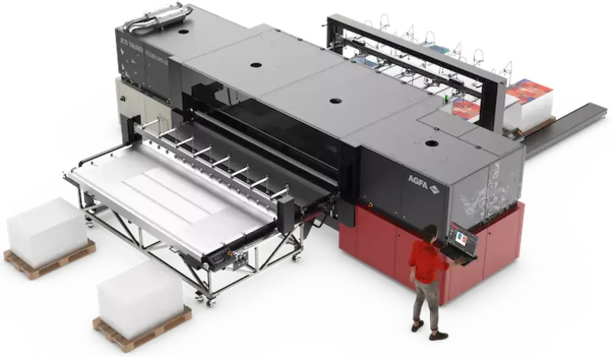 Agfa, for example, introduced a UHS version of its Jeti Tauro H3300 LED printer specifically for the corrugated packaging market as well as the upper end of the sign and display sector. The printer itself is a 3.3m wide hybrid wide format printer using UV ink with LED curing. It can produce up to 600 sqm/hr with the key to this productivity being the highly automated loading and unloading system.