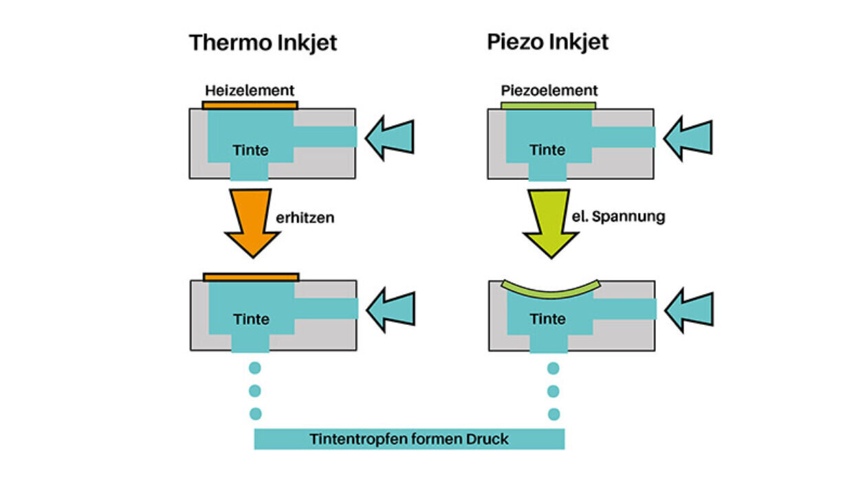 Many different ink formulations can be used in piezo heads. This is because the ink does not need to be boiled. As a result, heat-sensitive and highly volatile components, that are problematic with thermal inkjet, are also suitable.