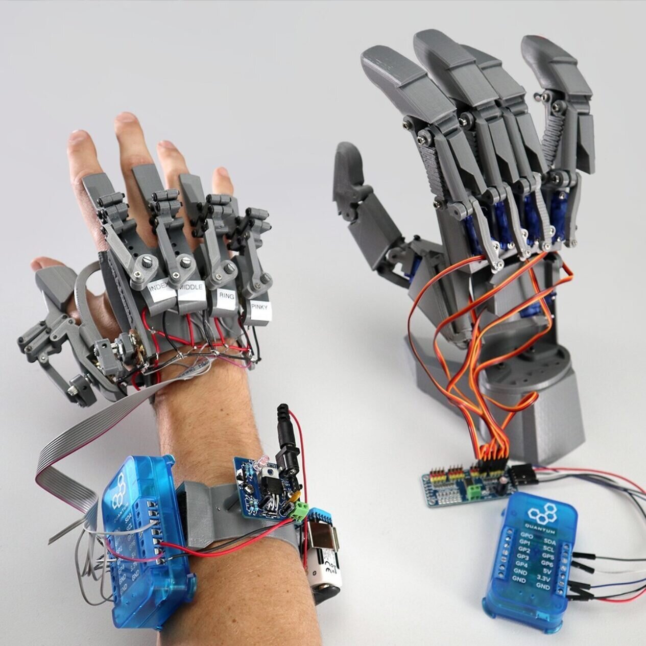 Description: Quantum Integration joined forces with Youbionic to create a set of 3D-printed robotic hands. The Exo Hand is a wearable glove that allows you to control the movements of the robot hand.