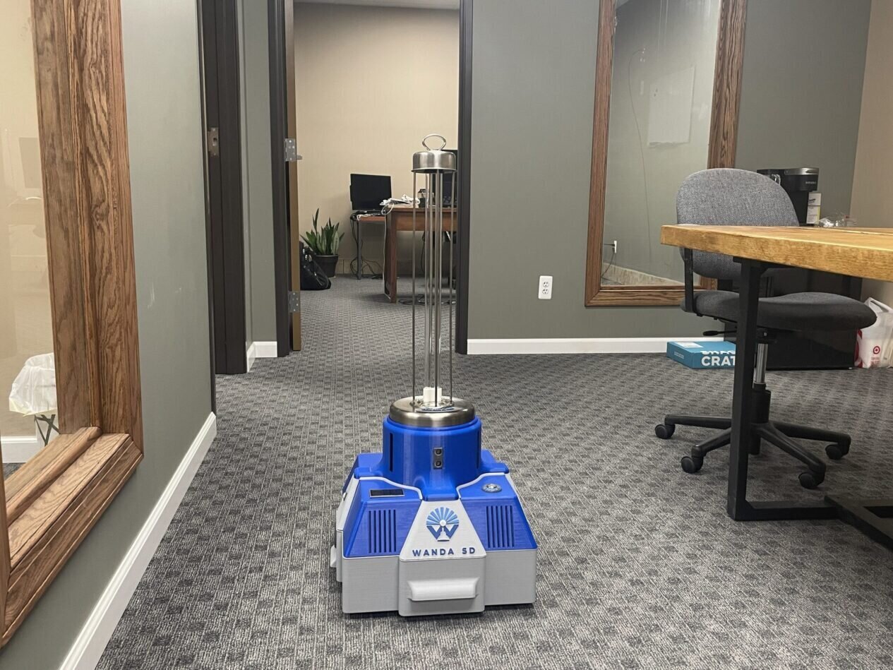 Description: Resgreen Group used 3D print to develop a new robot that uses Ultraviolet-C (UVC) lights to sanitise the air and various surfaces. Featuring a 3D-printed base, the Wanda SD can be deployed in environments such as schools and offices.