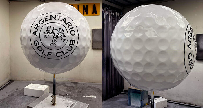 Description: Italian company SismaItalia used a Massivit 1800 to create this giant golf ball. The piece was installed on a roundabout at the entrance to the Argentario Golf Club – Societa Sportiva Dilettantistica.