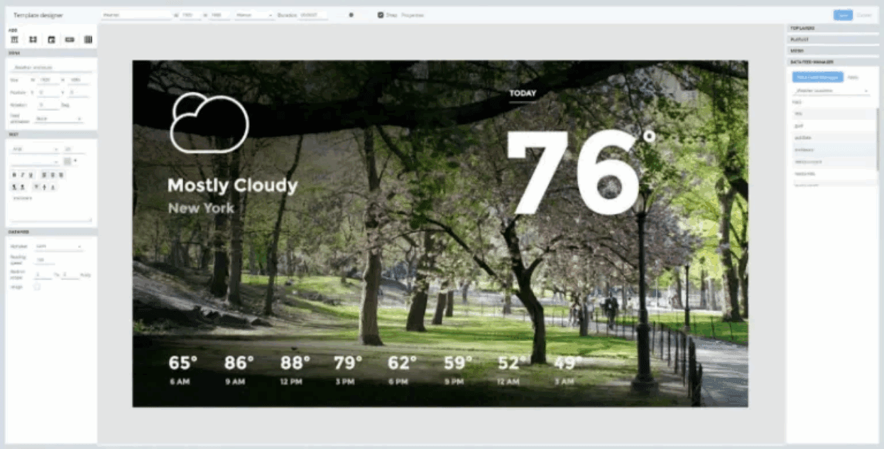 This is when you use a live data source to decide if and where a piece of content will be shown. Take for example a business that uses an internal KPI database to display employee announcements based on the company’s performance. Or, an advertising network that shows specific ads based on the current weather conditions at each screen location.