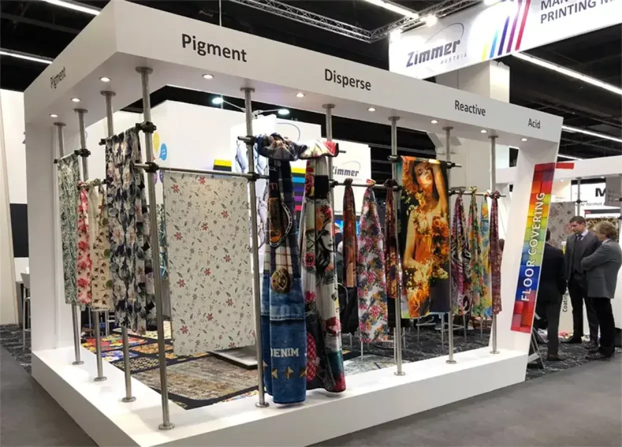 Acid and reactive Dye offer brilliant colours, a smooth textile grip, good washability and light fastness, they mainly are used fashion and high-end home décor. Inkjet inks are available for market-leading printheads from companies like Sun Chemical. Industrial strength roll-to-roll textile printers like the Epson Monna Lisa Evo line or the Zimmer Austria Colaris are developed for use with various ink chemistries.