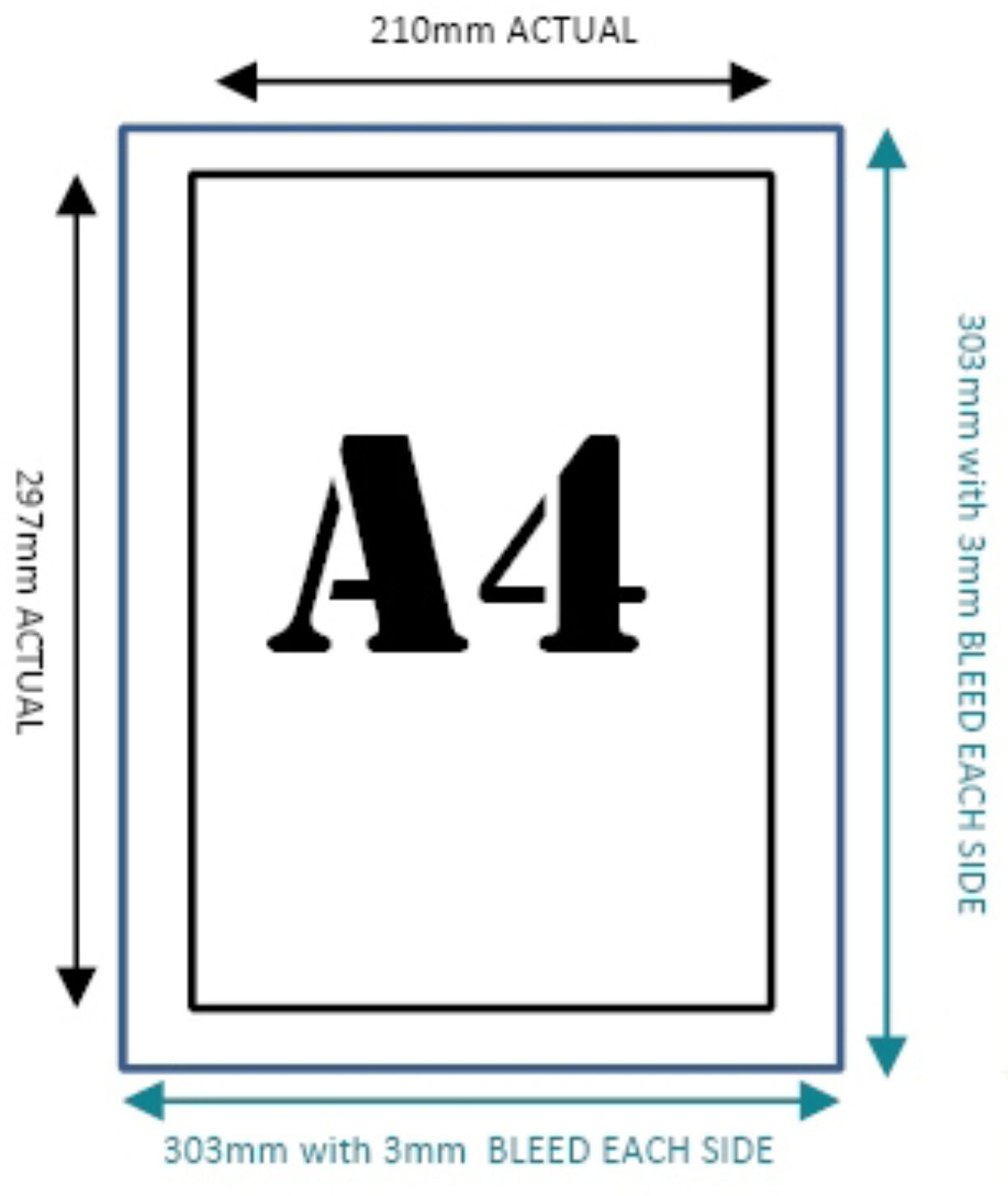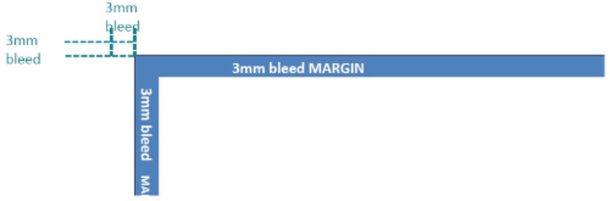 Bleed is artwork that is extended beyond the actual dimensions of the document. It is used to avoid strips of white paper showing on the edges of your print when cut to size. If a document has no bleed and the trimming is out by 0 5mm then you will end up with a white strip. If a document has no bleed and the trimming is out by 0.5mm then you will end up with a white strip. That is why we recommend adding bleed to all documents. For printing a bleed of 3mm is required. Depending on what program you are using, you may be able to apply bleed as you are saving as a PDF, in other programs that do not have that option namely Word, Powerpoint and Photoshop you will need to set up the page size as slightly larger to allow for the bleed.
