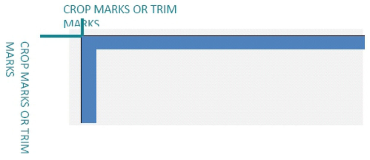 Crop marks are the little lines that sit around the edge of the document showing where the area of bleed ends and the proper document area begins. They work alongside bleed to tell the printer where the paper needs trimming. Crop marks are usually hairline or 0.25pt in thickness and are set in Registration Black. Crop marks are applied when you save as a PDF. Make sure to select “apply crop marks or trim marks” before saving. 3mm bleed 5mm margin.