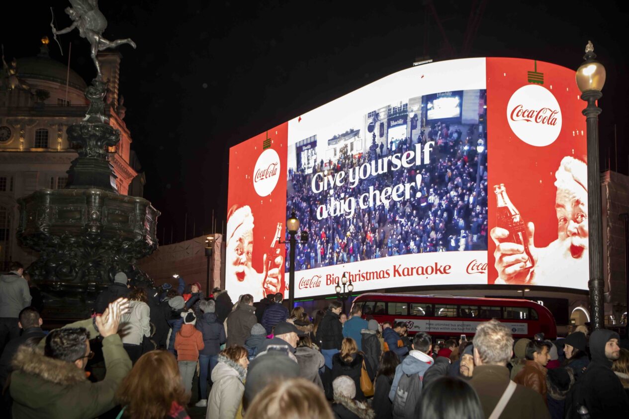 Description : Ocean Outdoor est présent pour la deuxième fois pour ce projet festif réalisé en partenariat avec Coca-Cola. Toujours sur le site de Piccadilly Lights, des chants de Noël ont été projetés sur l’écran pendant une heure, invitant les passants à se joindre aux chants. L’événement a été retransmis sur l’écran, et les participants ont pu se voir sur l’écran numérique et partager ce moment via les médias sociaux.