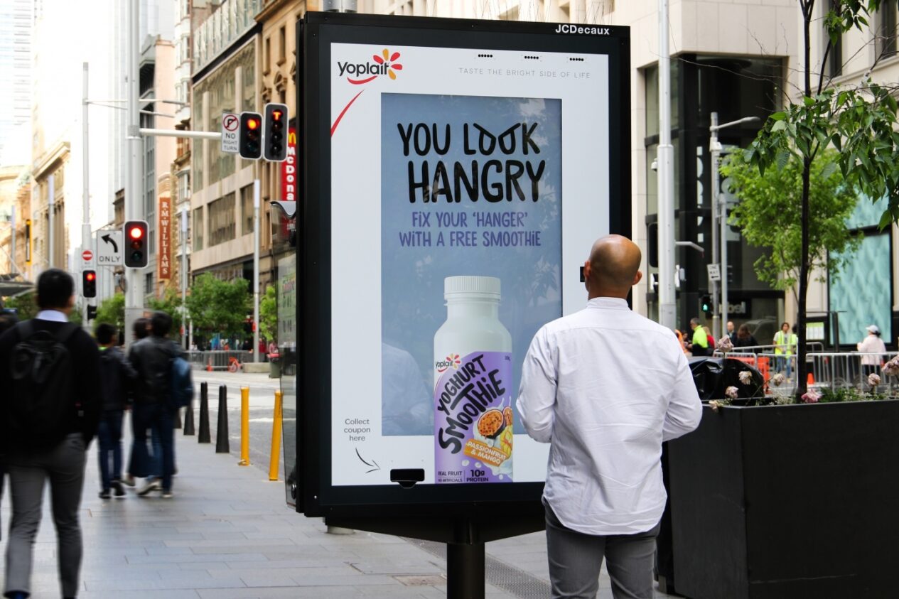 Description : L’affichage numérique interactif devient un élément de plus en plus populaire du marketing moderne. JCDecaux et Yoplait se sont associés pour cette campagne en Australie. Si les passants souriaient à l’enseigne promouvant les produits Yoplait, l’enseigne distribuait un coupon pour un smoothie gratuit.