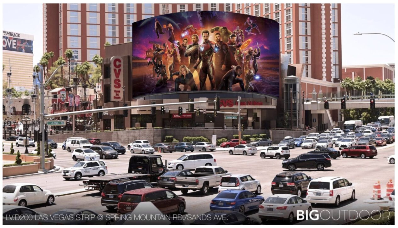 Description : Back to Vegas et Victory Hill Exhibitions attirent l’attention de millions de paires d’yeux sur le célèbre Strip de Las Vegas avec ce panneau numérique. L’affichage mesure 45 pieds de haut et 175 pieds de long, ce qui en fait le deuxième plus grand panneau numérique sur le Strip.