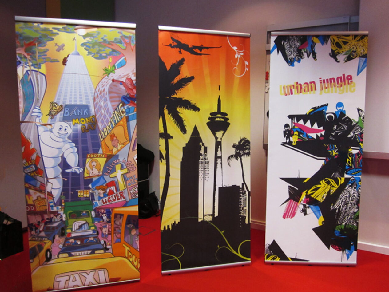 ロールアップやその他のディスプレイスタンドを複数回使用することも、より持続可能な大判印刷仕上げ戦略の一環である。