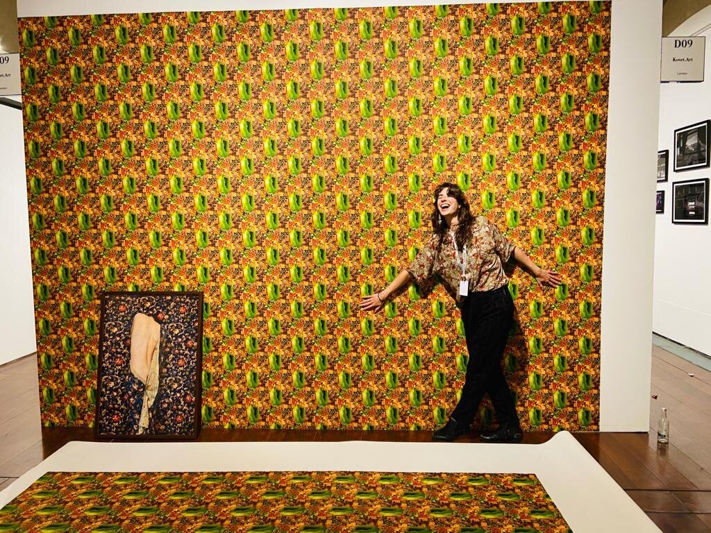 説明:アメリカ人アーティストのLoreal Prystajは、ロンドンのイズリントンにあるNo.20 Arts Galleryで開催された「Around the Table」展のために、Phototexの自己粘着性ファブリックを使ってアートインスタレーションを制作した。Nude Pepper」は、見る者をその光景、香り、音に「消費し、消費される」よう誘う没入型キッチン空間として展示された。