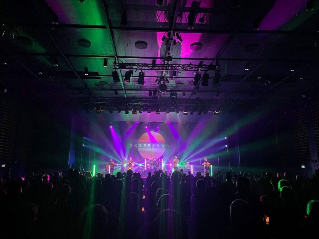 説明Eventureworksは、Soyang EuropeのVista Display ST-117ポリエステル経編地を使用し、スコットランドのトランジショナル・ロックバンドSkerryvoreのプリント背景幕を制作。Roland Texart XT 640昇華型プリンターで印刷された背景幕は、バンドと共にイギリス、デンマーク、ドイツ、オランダ、アメリカでのライブに同行した。