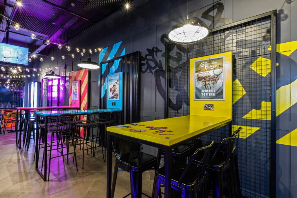 説明:マクロアートがリテール・デザインのエキスパート、ネスト・スタジオと組んで、高級デザート・ブランド、クリームズ・カフェのユニークな店舗スペースとインテリアを手がけた興味深いプロジェクト。このプロジェクトでは、ウィンドウ・グラフィック、フロア・グラフィック、ライトボックス、ファブリック、ネオン照明、ダイボンド・サイネージ、グラフィティ・ワークなどを手がけた。
