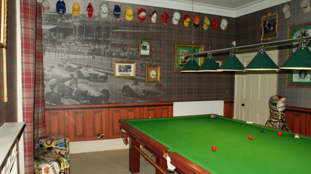 説明サインとグラフィックの会社であるジョン・ヤング・グループは、アンタリスのコアラ・ウォールデザインNWを使用して社屋内を全面的に改装し、顧客にサービスを実際に見てもらうためのショールームに変えました。同社はRoland SG2-540を使用して、お城の内装を模したグラフィックや、ウイスキールーム、スヌーカーをテーマにしたルームのプリントを行いました。