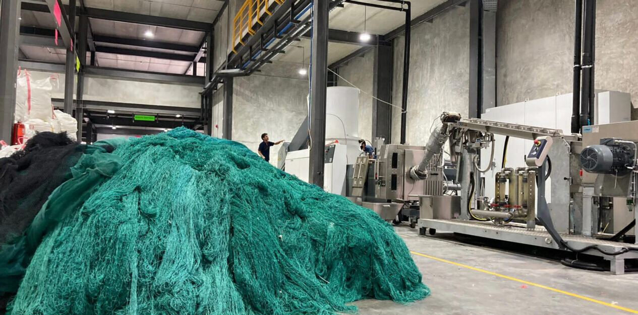 Het afval van de visindustrie is verantwoordelijk voor ongeveer 10% van het afval in de oceaan: tussen de 500.000 en 1 miljoen ton aan vistuig wordt elk jaar weggegooid of gaat verloren in de oceaan. Afgedankte netten, lijnen en touwen vormen nu ongeveer 46% van de Great Pacific Garbage Patch.