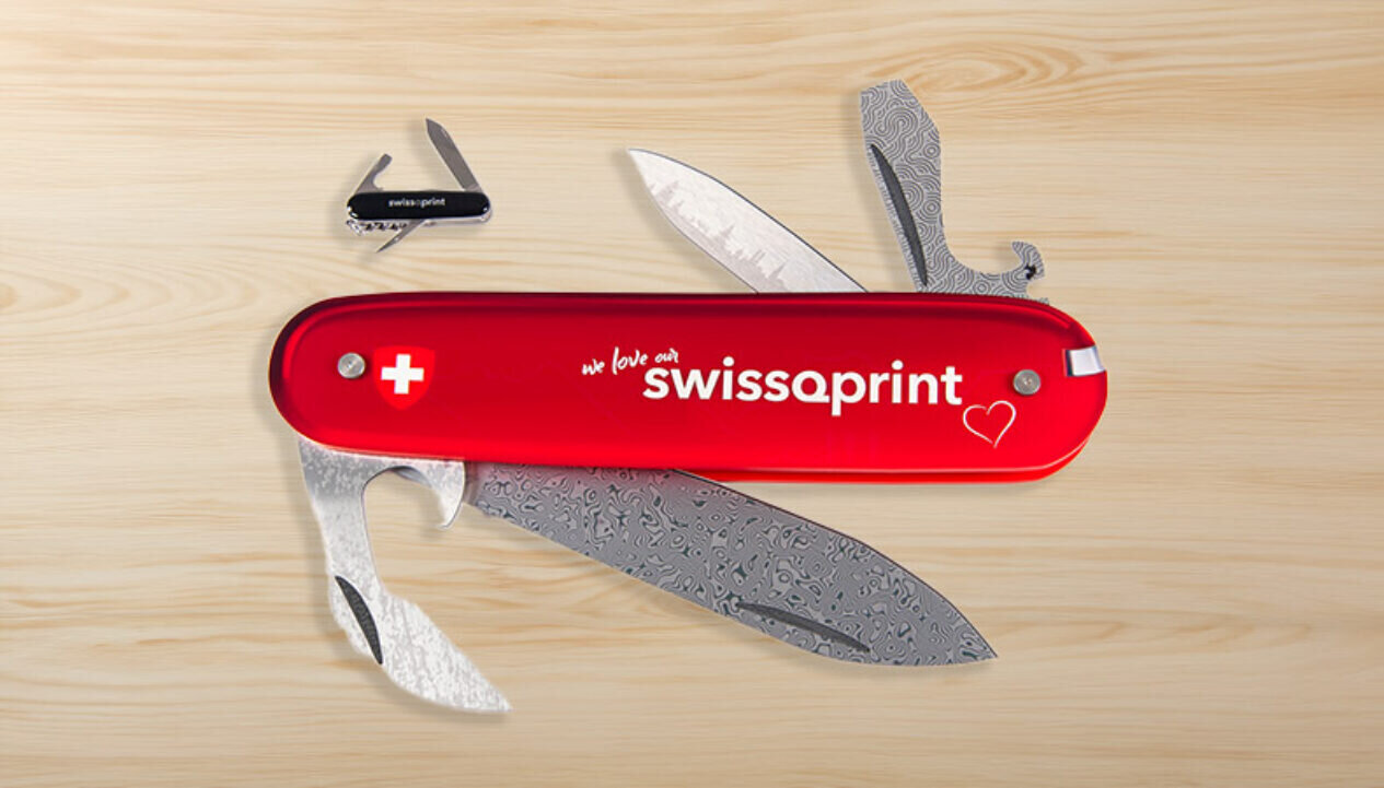 In de swissQprint Creative Challenge veroverde Signaletik Diffusion de 4e plaats met "Le couteau swissQprint", een replica van een Zwitsers zakmes. Reliëfelementen geven elk gereedschap een unieke uitstraling.