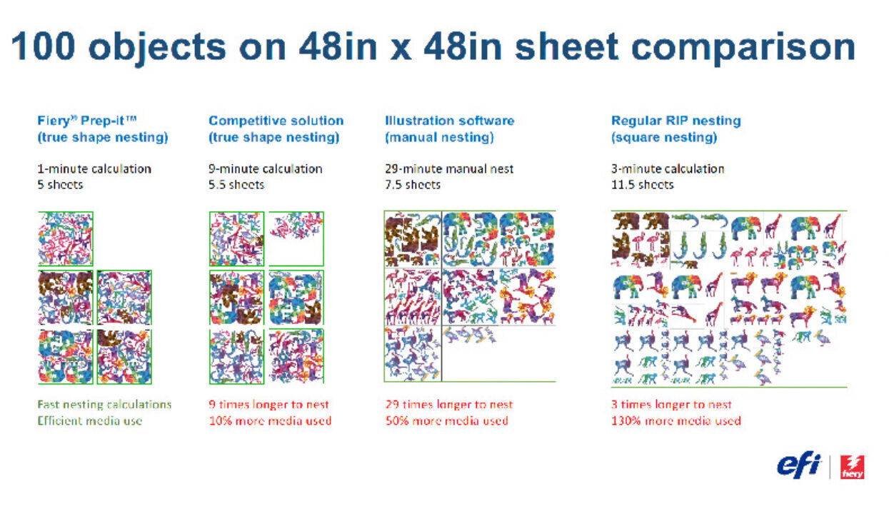 “O aproveitamento eficiente, preciso e rápido de formas reais para trabalhos de corte, como autocolantes e sinais de trânsito, são três capacidades essenciais para um produto de fluxo de trabalho de gráficos de ecrã”, afirmou John Henze, vice-presidente de vendas e marketing da EFI Fiery. A empresa lançou recentemente o seu novo software e irá apresentá-lo na FESPA Global Print Expo 2022, em Berlim, no próximo mês.