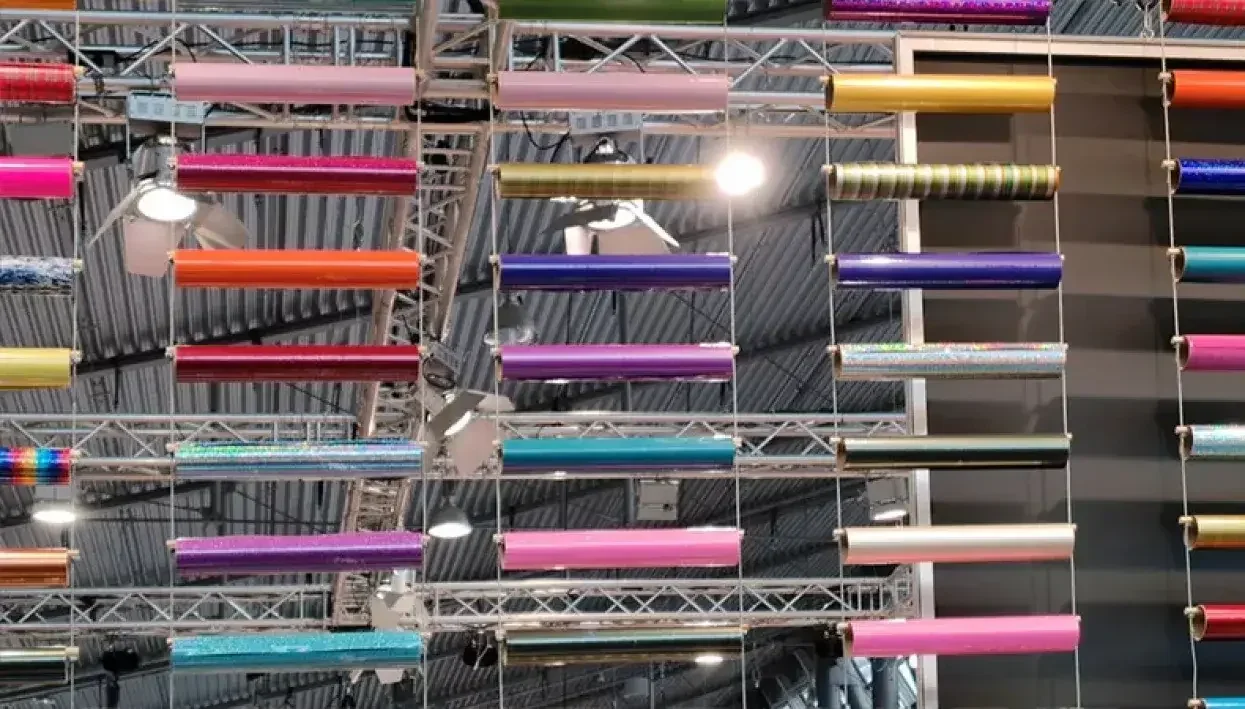 用于切割绘图仪的纺织薄膜是广告技术的主要产品,切割绘图仪于 20 世纪 80 年代初进入市场,当时乙烯基字母主要用于车辆装饰和标牌。在此过程中,刀具会划过留在衬垫上的彩色箔片(”吻切”)。如今用于服装印花的薄膜工作原理几乎相同,但主要以聚酯为主。它们既适用于棉,也适用于聚酯。